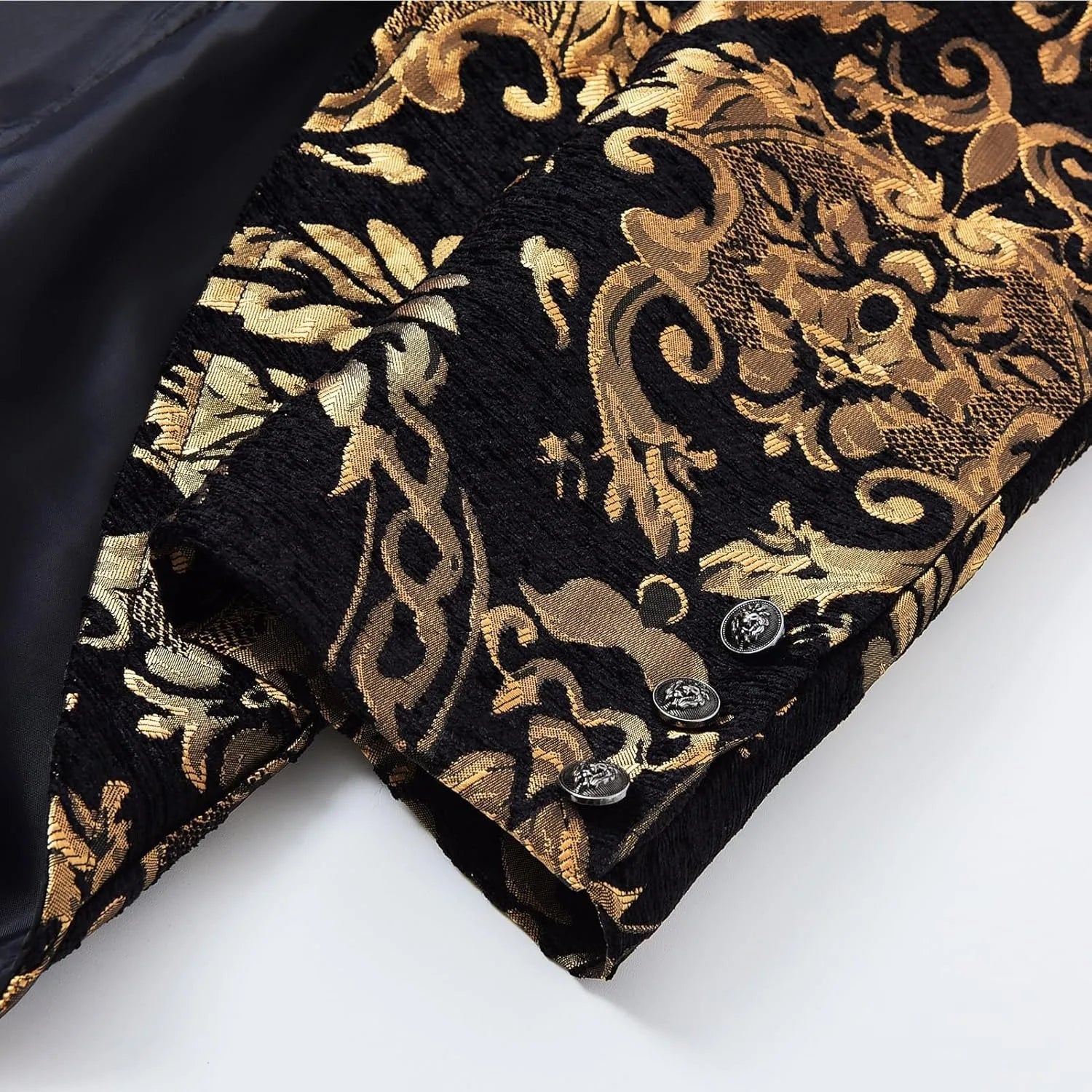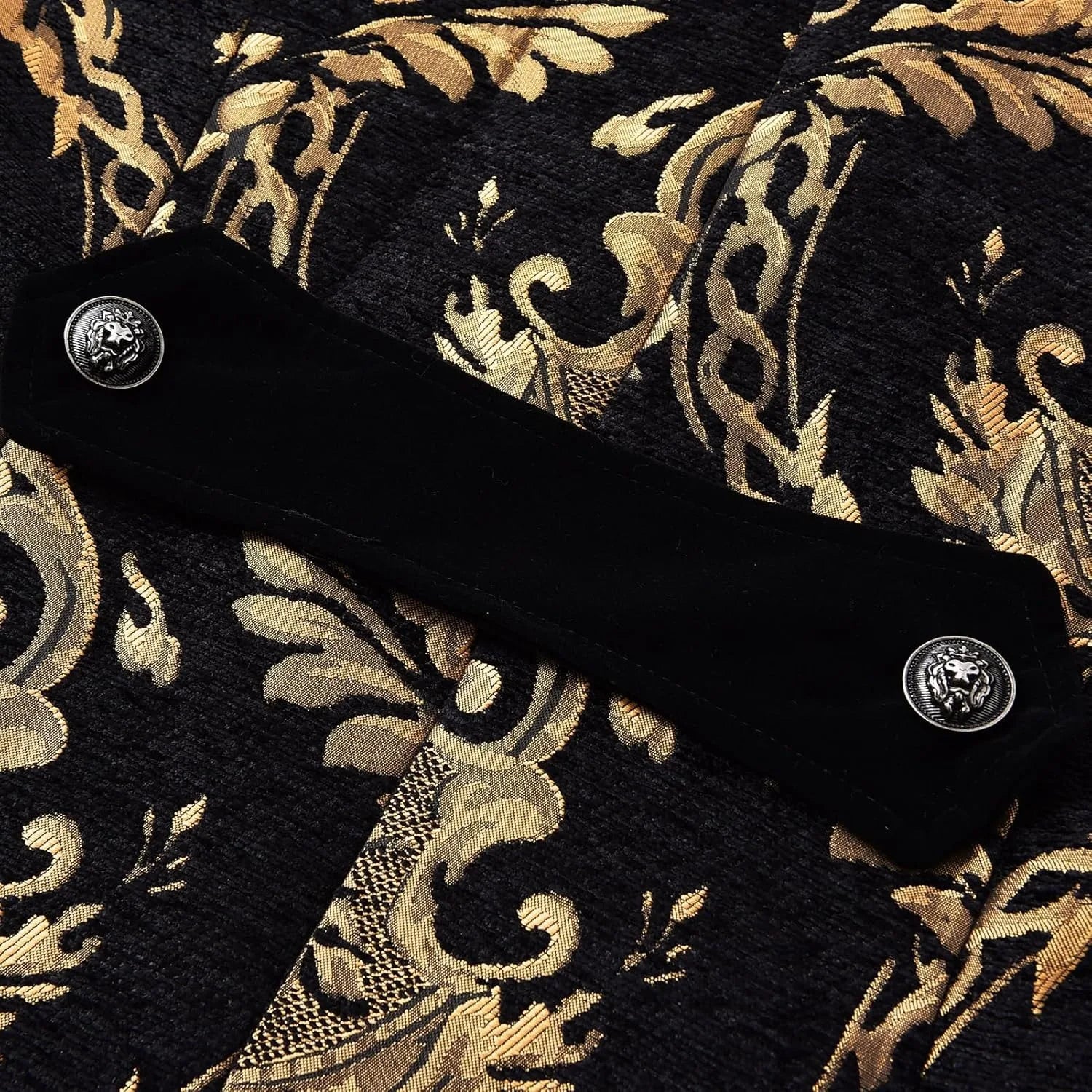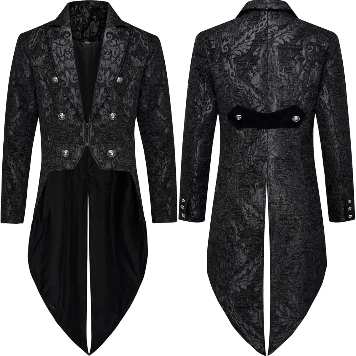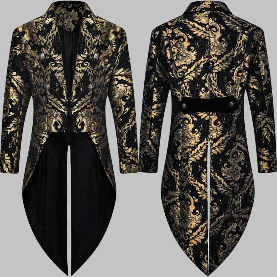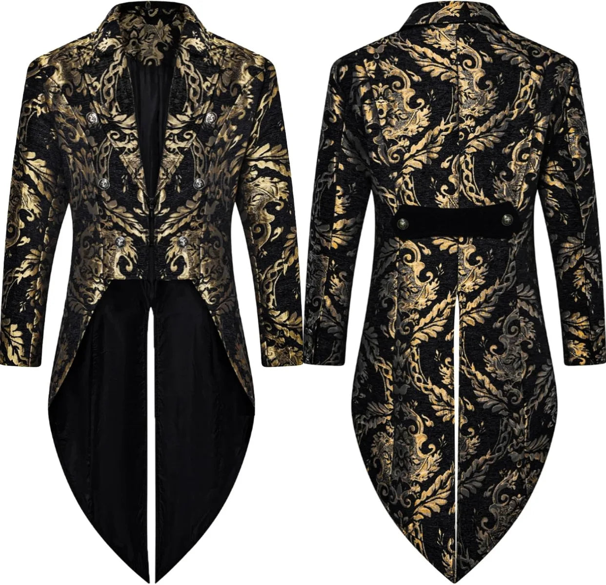 Redingote Gothique Steampunk Brodée pour Homme – Noir et Or