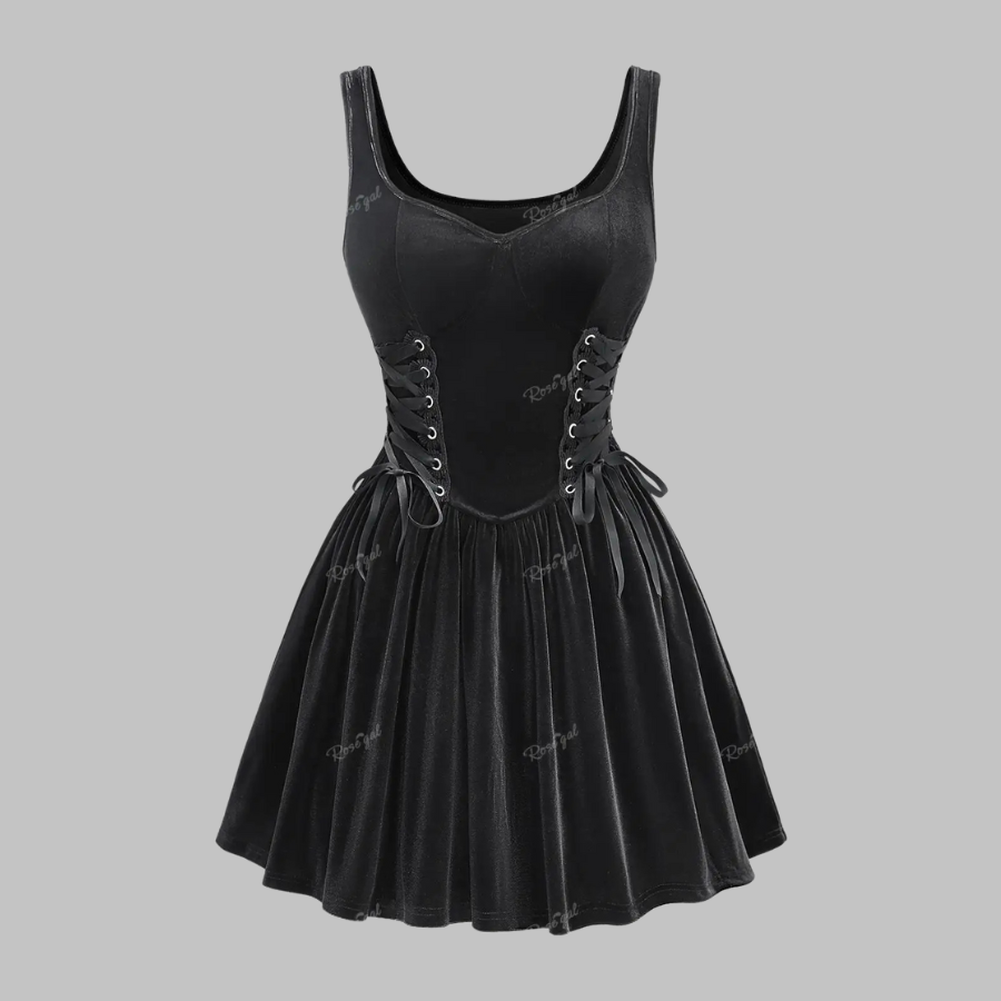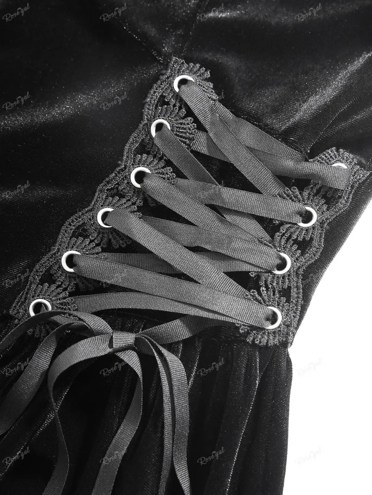 Robe Gothique Noire Taille Plus avec Corset et Jupe Évasée