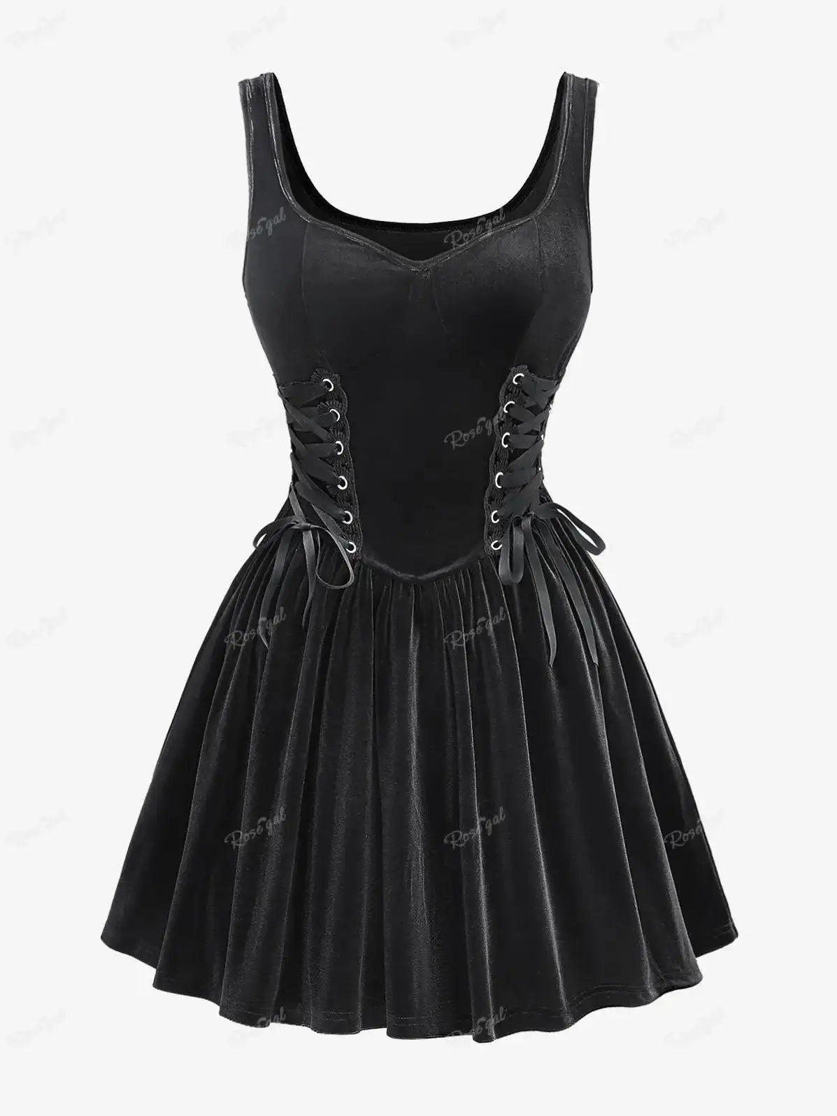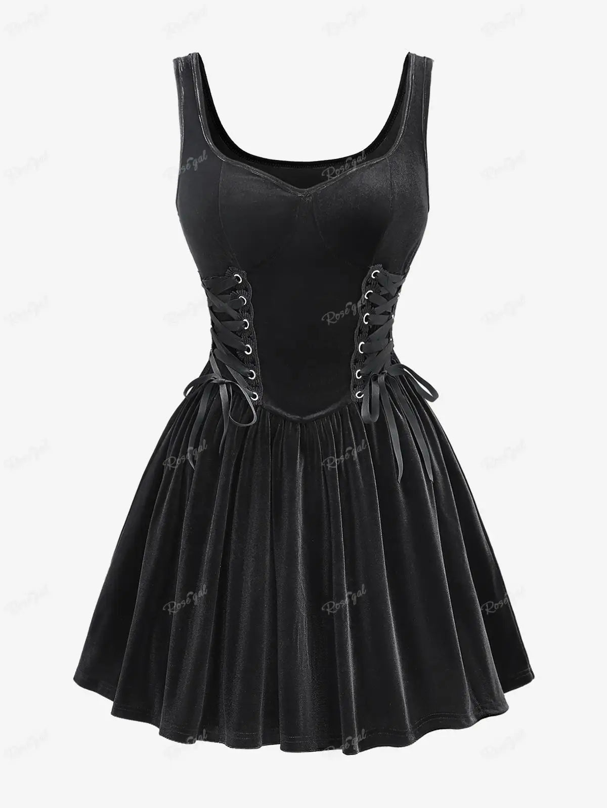Robe Gothique Noire Taille Plus avec Corset et Jupe Évasée Voir les options